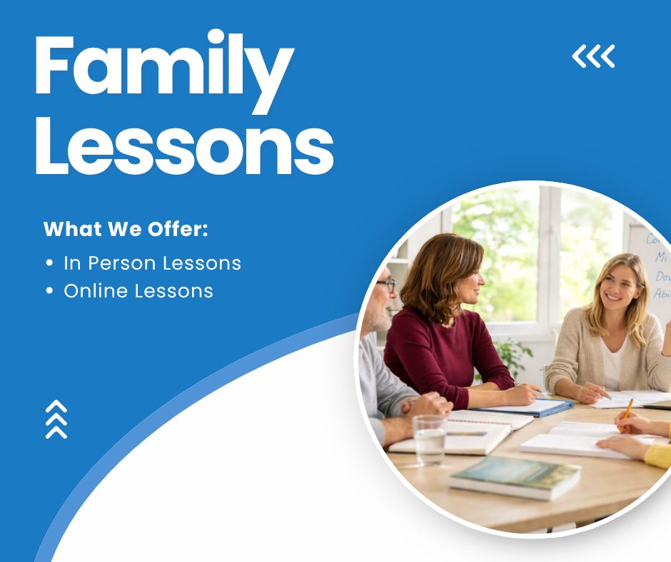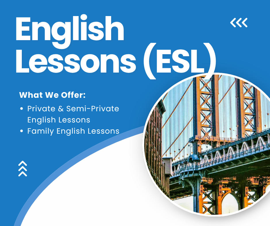 English tutoring is available for adults and children as private lessons, or multiple family members can be accommodated in semi-private or family sessions. Lessons can be held in-person or online.